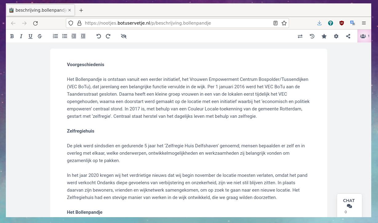 We zien BoTu Servetje meer als een sociaal project en niet per se heel technisch. Toch zitten we echter heel vaak achter de computer en schrijven we zeker veel vergaderingsnotulen. Daarom hebben we nootjes.botuservetje.nl online gezet en het staat open voor wie een digitale “schrijfblok” nodig heeft!